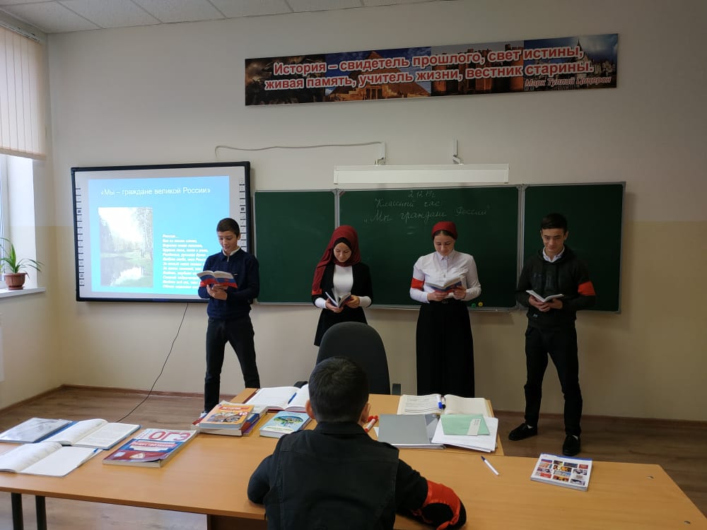 12.12.2019На основании плана воспитательной работы на 2019-2020 учебный год, в целях решения задач гражданского, патриотического воспитания учащихся, формирования у них гордости за достижения своей страны и бережного отношения к историческому прошлому и традициям народов России, понимания ценностей демократического общества и важных качеств личности: гражданской позиции, толерантности, патриотизма, популяризации идеи единения многонационального народа Российской Федерации через любовь к Родине, к своему народу в школе были проведены мероприятия, посвященные Дню Конституции.