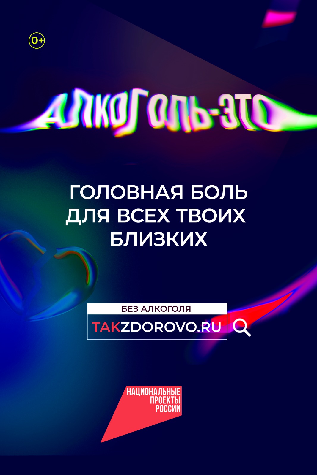 АНО «Национальные приоритеты» совместно с Минздравом России запустила социальную кампанию, направленную на борьбу с алкогольной зависимостью – «Жизнь без алкоголя». Он стартовал на ТВ, на радио, в наружной рекламе и в интернете с 18 ноября 2024 года. В материалах кампании описаны типичные ситуации, в которых человек под воздействием алкоголя совершил необдуманный поступок и испортил впечатление о важном моменте из жизни.