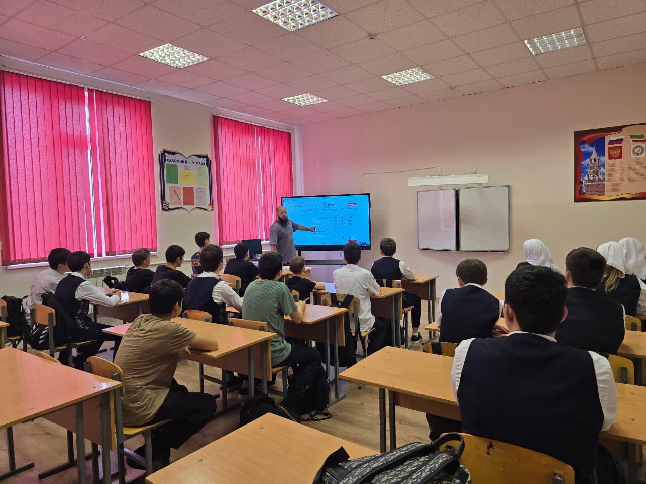 Учитель физической культуры Якубов А.М. рассказал о выполнении нормативов комплекса ГТО, о преимуществах знаков отличия, о сроках выполнения требований комплекса, о порядке проведения тестирования, также ответил на волнующие ребят вопросы о смене возрастной ступени и новых нормативных требованиях. В ходе беседы школьники узнали, что такое ГТО, а также важность ГТО в физическом развитии граждан и укреплении здоровья.