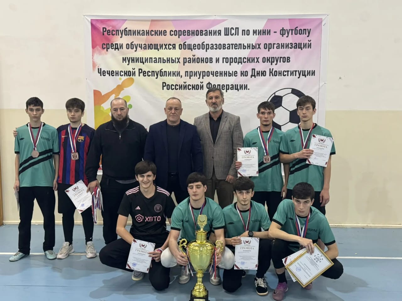 11-12 декабря 2025 года в г.Урус-Мартан проводились республиканские соревнования «Школьная спортивная лига» по мини-футболу, приуроченные ко Дню Конституции Российской Федерации, в которых приняло участие 13 районных команд республики.