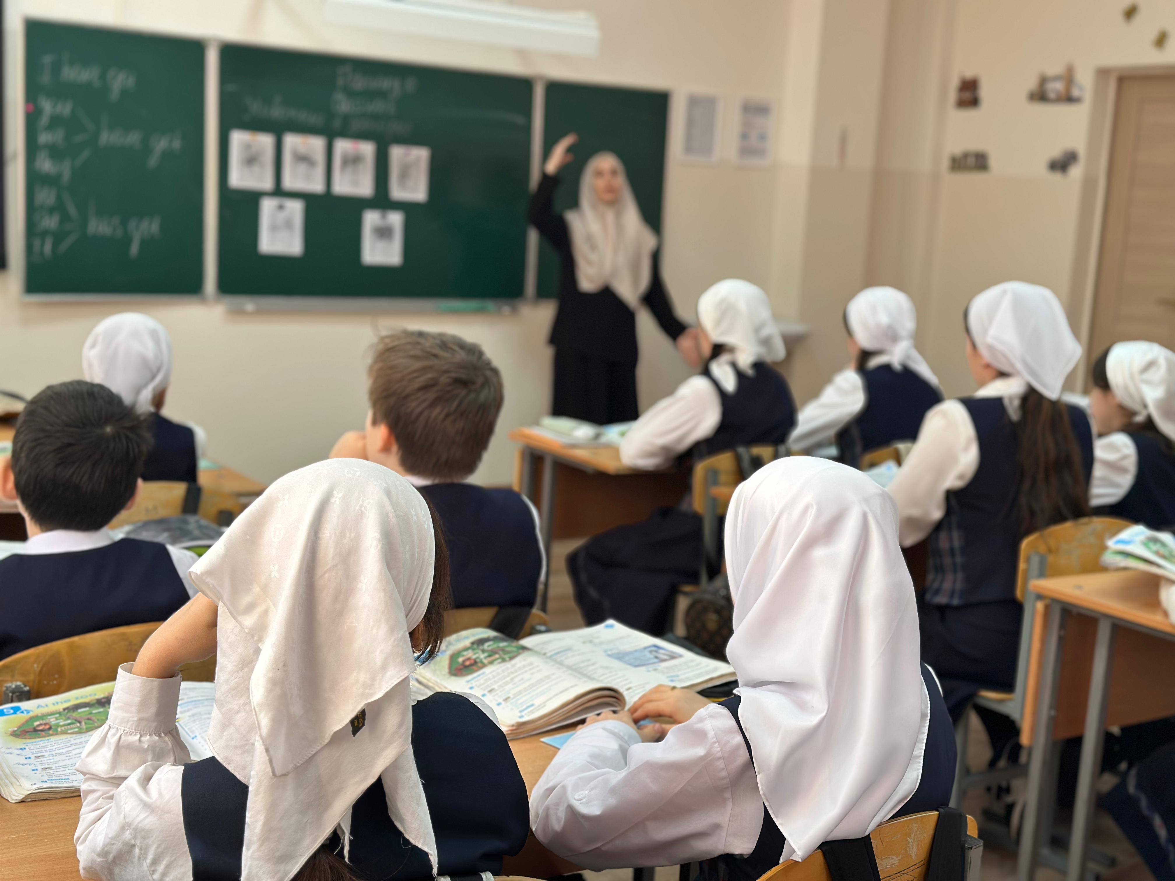 На открытом уроке присутствовали директор школы Абдурзакова Милана Я. и заместитель директора по НМР Кантаева Луиза Х., которые отметили высокий уровень подготовки урока, профессионализм учителя и активность учащихся 5 класса.