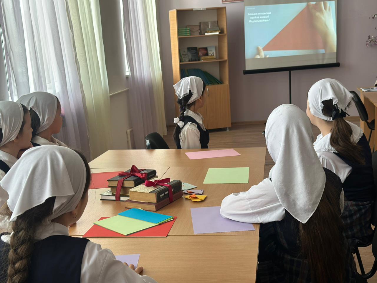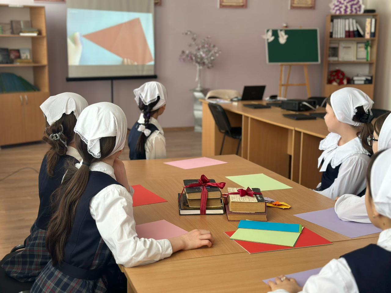 В преддверии праздника 8 Марта в нашей школе педагогом-библиотекарем был проведён небольшой мастер-класс по созданию праздничных открыток. В мероприятии приняли участие учащиеся 4 класса.