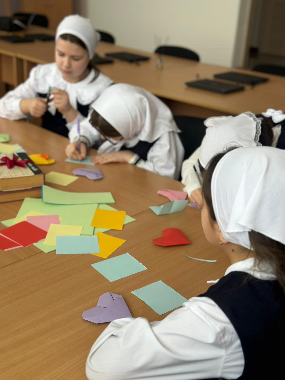 Ребята с большим интересом и вдохновением создавали открытки в виде сердечек, стараясь сделать их яркими и аккуратными. Каждый ученик вложил в свою работу тепло и любовь. Особое внимание дети уделили поздравительным запискам — они написали трогательные и искренние слова для своих мам к Международному женскому дню.